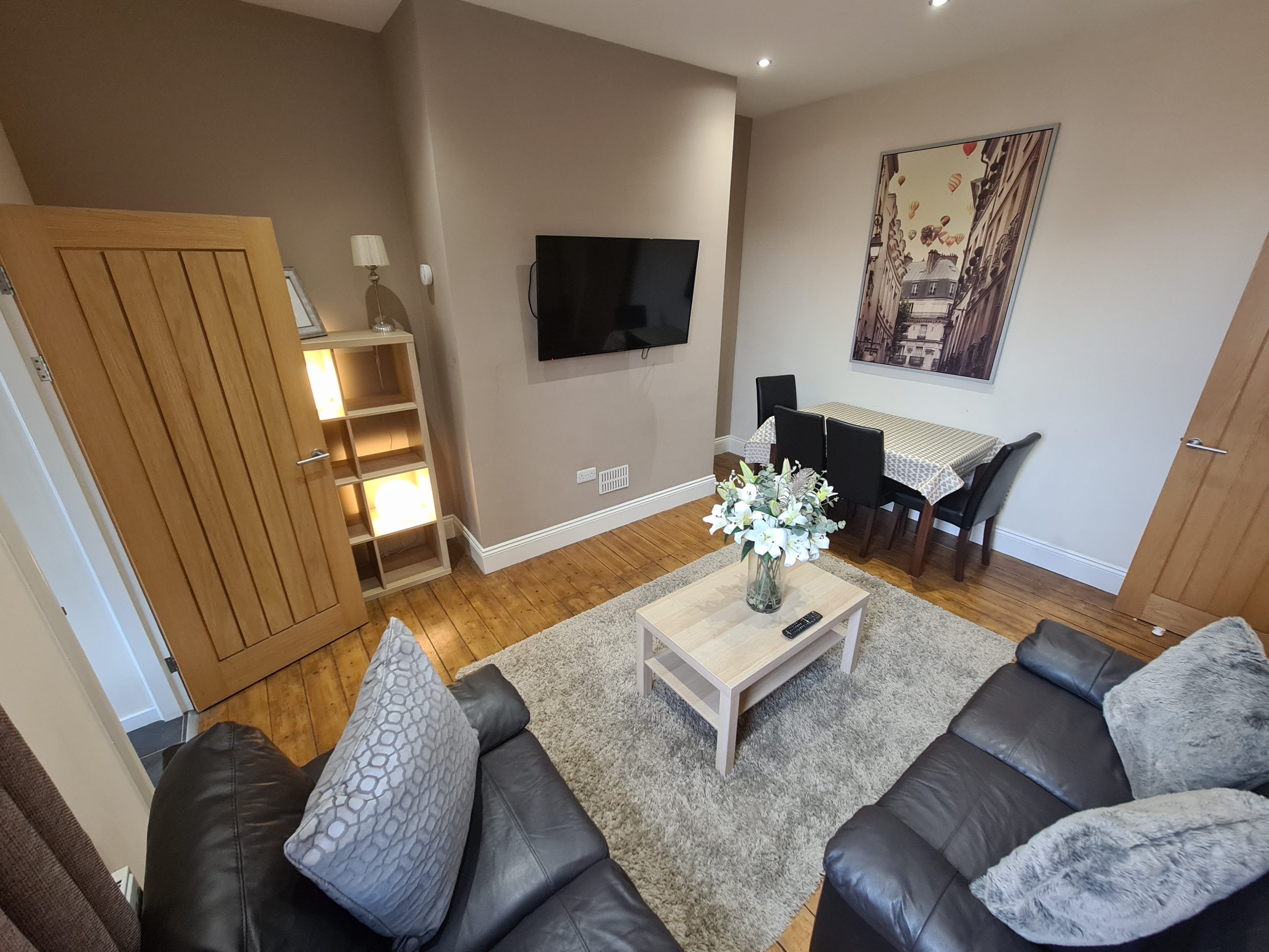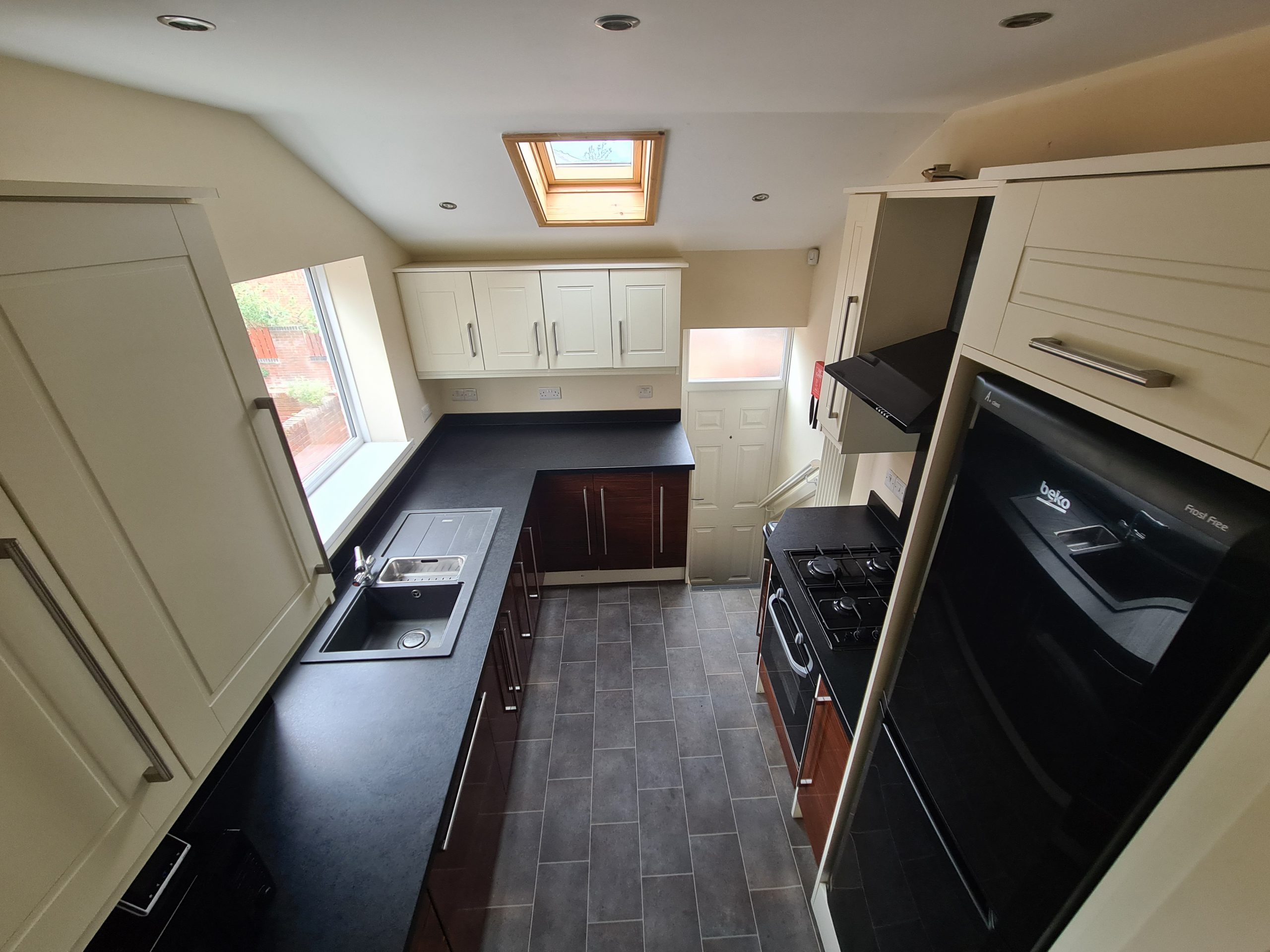 Stunning student flat in the heart of Sandyford with 3 double bedrooms with matching oak furniture, lounge/diner with new leather furniture and 42″ T.V. Newly fitted bathroom with power shower. Bespoke newly fitted kitchen with large Fridge Freezer, dishwasher and washing machine. Burglar alarm, 350 MB internet, secure off street parking, additional permit provided for on street parking and secure bike storage.